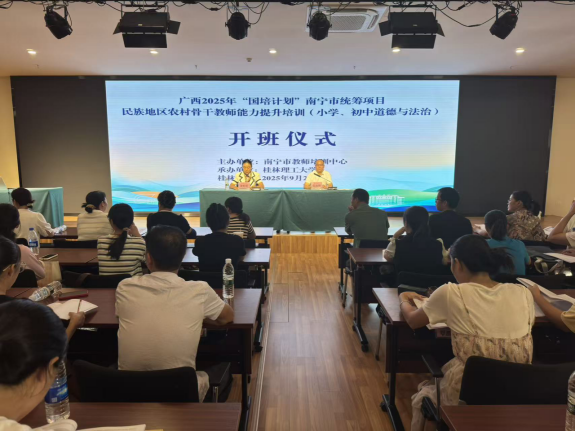 9月20日,广西2025年“国培计划”南宁市统筹项目-民族地区农村骨干教师能力提升培训(小学、初中道德与法治)在我校顺利开班。南宁市教师培训中心中学室主任梁婷婷,桂林理工大学继续教育学院副院长张海林,以及来自南宁市的140位学员参加了开班式。