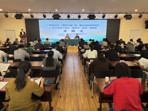 11月1日,广西2025年“国培计划”第一批自治区统筹项目--中小学骨干校长“教学评一体化”研修班在我校顺利开班。自治区教育厅教育质量监测中心主任蒋瀚洲,桂林理工大学继续教育学院院长周国桥以及来自区内各地市的120位中小学校长参加了开班式。